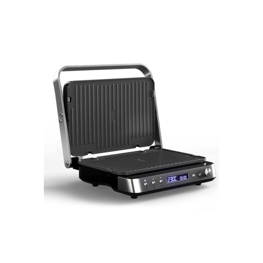 Domácí gril GRILLCHEF-3 splní i nejnáročnější očekávání dokonale připraveného masa, ryb a zeleniny. Vytvořte si chutný oběd, či večeři na dvou grilovacích deskách s nepřilnavým vroubkovaným a hladkým povrchem. Gril můžete využívat k ohřevu vrchní desky, nebo dolní desky, nebo na ohřev obou desek současně. Teplota grilu je nastavitelná od 80 až 230 °C. Taky si můžete nastavit čas, který potřebujete k přípravě dané potraviny. Při uplynutí zadaného času vás upozorní zvuková signalizace. Velký LCD displej je zabudovaný na přední liště kontaktního grilu. Součástí grilu je i miska na odkapávání šťávy a oleje.