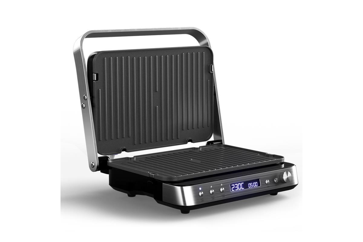 Domácí gril GRILLCHEF-3 splní i nejnáročnější očekávání dokonale připraveného masa, ryb a zeleniny. Vytvořte si chutný oběd, či večeři na dvou grilovacích deskách s nepřilnavým vroubkovaným a hladkým povrchem. Gril můžete využívat k ohřevu vrchní desky, nebo dolní desky, nebo na ohřev obou desek současně. Teplota grilu je nastavitelná od 80 až 230 °C. Taky si můžete nastavit čas, který potřebujete k přípravě dané potraviny. Při uplynutí zadaného času vás upozorní zvuková signalizace. Velký LCD displej je zabudovaný na přední liště kontaktního grilu. Součástí grilu je i miska na odkapávání šťávy a oleje.