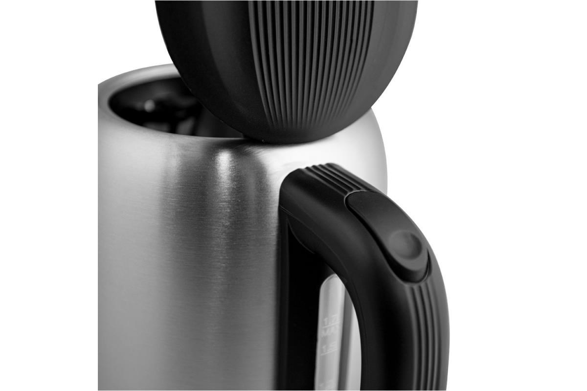 Automatická varná konvice, nerezová, Objem vody: max. 1,7 l, Napájení: 220 - 240V ~ 50/60 Hz, 1 850 - 2 200W, VDE zástrčka, Varná nádoba na odnímatelném 360 ° otočném podstavci, Topné těleso překryté deskou z ušlechtilé oceli, automatické vypnutí, Ochrana před ohřevem bez vody, ukazatel napájení, S indikátorem hladiny vody.