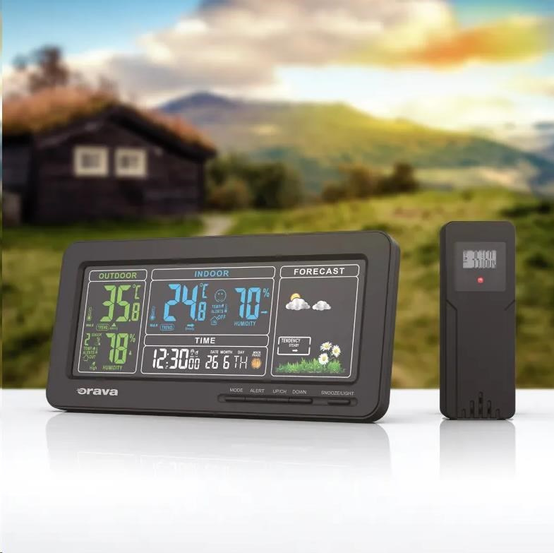 Meteostanice Orava Meteo-1 vás spolehlivě informuje o tom, jaká teplota je v interiéru i za okny vašeho domova. Na přehledem LCD displeji si kromě teploty a vlhkosti přečtete informace o čase, datu a předpovědi počasí.