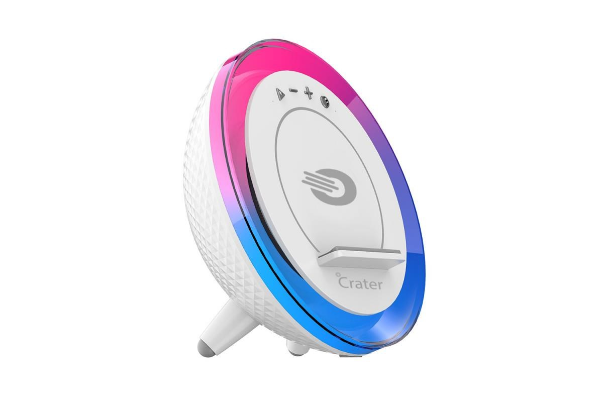 Crater-9 využijete také jako přenosný reproduktor, který díky Bluetooth snadno spárujete s mobilem, tabletem či počítačem, kde máte uloženy své oblíbené hudební kousky. Ať z něj znějí taneční skladby, hudba k jógovým sestavám či večerní ukolébavky, Crater-9 vás mile překvapí čistými a jasnými zvuky s dynamickými basy o výkonu 5 W (RMS). Ráno vás zvuk budíku ze smartphonu spolehlivě přebere iz toho nejtvrdšího spánku. Přes den reproduktor využijete i při video či konferenčních hovorech.