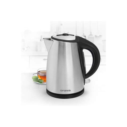 Rychlovarná konvice Orava, která zaujme především luxusní konstrukcí z nerezové oceli. Díky ní působí moderním dojmem a použití vysoce kvalitních materiálů se navíc pozitivně podepisuje i na celkové životnosti spotřebiče. Konvice je přitom schopna připravit až 1,7 litru vody, takže se hodí i do větších domácností a kanceláří. Zárukou toho, že bude vroucí voda pro oblíbený nápoj připravena během pár desítek sekund, je hodnota maximálního příkonu, která činí nadstandardních 2200 W.