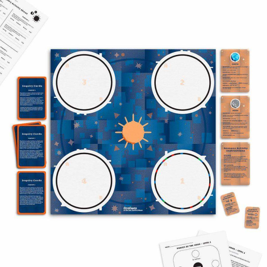 Začněte tím, že sestavíte modely planet a umístíte je na hrací desku. S pomocí faktografických karet, aplikace, popřípadě robůtka Ozobot se naučíte o střídání ročních období a jednotlivých fázích Měsíce. Vidíte, jak planety kolem sebe obíhají? Teď už bude snadné vyplnit záludné otázky v přiložených pracovních listech!