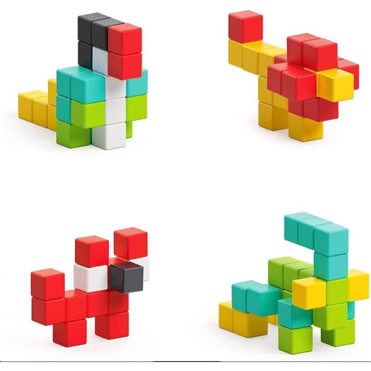 Každý z magnetických bloků PIXIO je kostka o velikosti 8x8x8mm. Uvnitř je 6 malých magnetů vážících méně než 1 g. Chytrý a unikátní design magnetů dávají nekonečné možnosti skládaní obrazců – neexistuje špatný postup, jak stavět a tvořit, protože jde jenom o kreativitu, představivost a šikovnost tvůrce. Všechny modely PIXIO jsou mezi sebou kompatibilní.