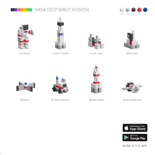 V každém balení produktů PIXIO je zdarma kód, který umožňuje přístup k exkluzivnímu obsahu aplikace. Stáhněte si aplikaci z Google Play nebo APP Store a prozkoumejte více než 1000 nápadů, jak tvořit pixelové objekty a 3D obrazce.