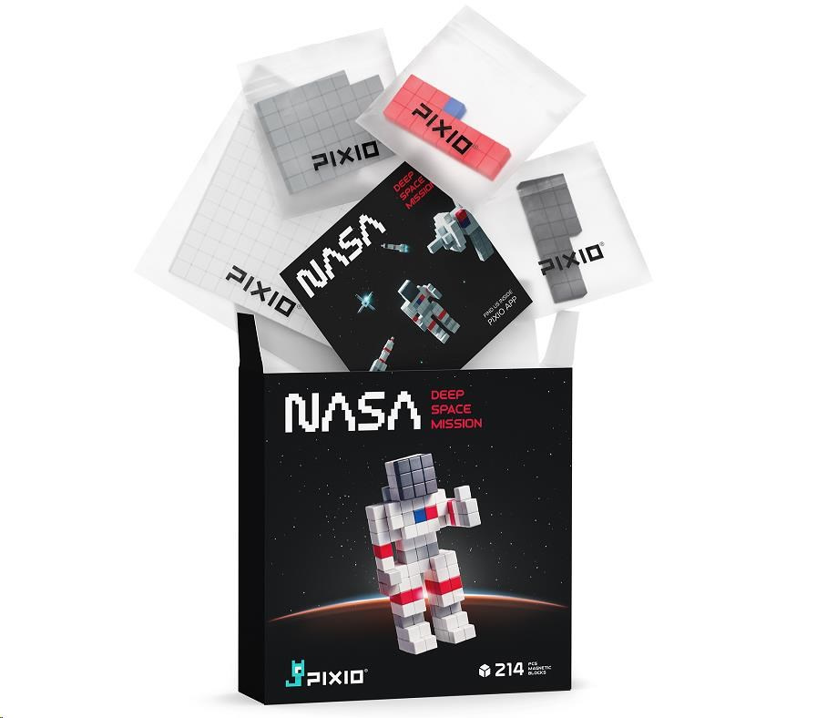Stavebnice PIXIO 31101 NASA Deep Space Mission (Vesmírná mise) obsahuje 214 bloků PIXIO v 5 barvách. Umožní oživit vaše kreativní nápady a přinesou barevnou radost do života. Začněte tavbou jednoduchých modelů podle pokynů a poté, až budete připraveni, přejděte k vytváření vlastních návrhů. S touto sadou postavíte astronauta, lunární vozítko, raketu, družici, teleskop a mnoho dalších. Pixio je splněný sen pro fanoušky Pixel Art, hráče Minecraftu a všechny, kdo si prostě rádi hrají. Použijte jej jako učební zdroj pro rozvoj kreativity dětí. Obsahuje 5 barev, které vám pomohou přeměnit jednoduché tvary na skvělé objekty a postavy (bílá 128x, šedá 46x, černá 20x, červená 19x, modrá 1x).