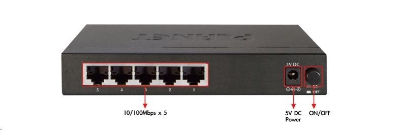 Planet FSD-503 Switch, 5x 10/100Base-TX, 10", kov, fanless