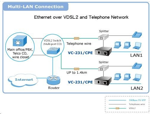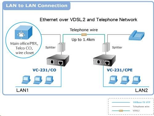 Planet VC-231, Eth. VDSL2 konvertor, 100Mbit, master/slave, RJ-11