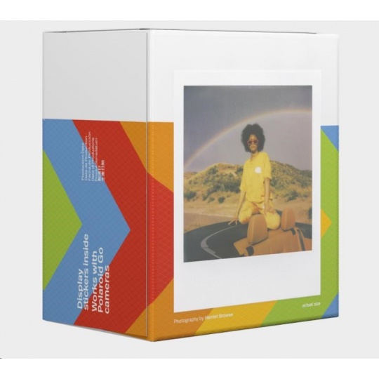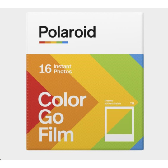 Každé balení obsahuje 16 barevných instantních fotografií s lesklým bílým rámečkem připravených pro světlo světa. Exkluzivně pro použití s fotoaparáty Polaroid Go. Velikost: 66,6 × 53,9 mm / velikost snímku: 47 × 46 mm Bílý rámeček ASA 640 Vyvíjení fotografie do 10–15 minut Nejlépe uchovávat v chladničce.