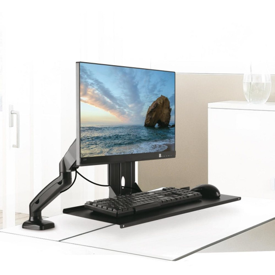 Police na klávesnici a myš Fiber Mounts M7C56 Přídavná police na klávesnici a myš na držáky monitorů, uchycení na VESA 75x75 nebo 100x100 mezi monitor a držák, kovová, výborná kvalita Potřebujete na držák pod monitor umístit klávesnici a myš, aby jste ji nemuseli mít na stole? Řešení je snadné, elegantní a cenově dostupné. Nabízíme přídavnou polici na klávesnici a myš, kterou snadno uchytíte na VESA nástavec u stolních držáků, ale i nástěnných, případně stropních. Klávesnici a myš budete mít vždy přímo pod monitorem. Klávesnici je možné uchytit na všechny držáky, které podporují VESA standard 75x75 nebo 100x100. Přídavná polička na klávesnici a myš, ideální pro použití na stolní držáky monitorů nebo nástěnné držáky na Tv s úhlopříčkou do 27 palců, uchycení na VESA standard 75x75 a 100x100, nosnost 2kg, rozměry 650x211mm - Fiber Mounts M7C56 Technické údaje: nosnost 2kg délka police 650mm šířka police 211mm uchycení na VESA standard 75x75 nebo 100x100 police je vhodná pod monitory a televizory s úhlopříčkou 13" až 27" snadná instalace materiál kov barva černá záruka 5 let Přídavná polička M7C56 je vhodná na všechny stolní, nástěnné i stropní držáky na monitory, které mají VESA 75x75 nebo 100x100 a monitor, který bude na držáku zavěšený bude mít úhlopříčku 27" nebo menší..