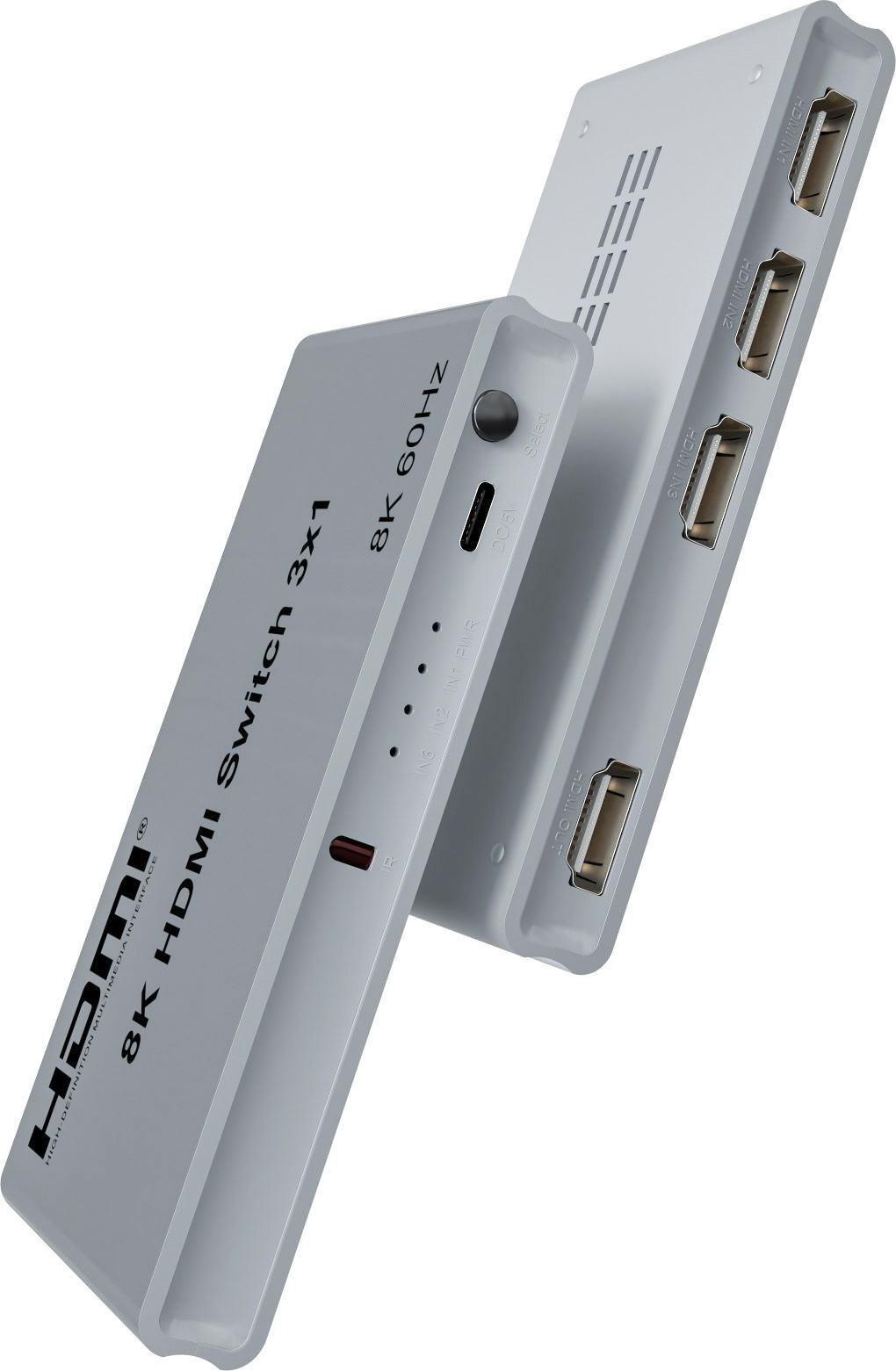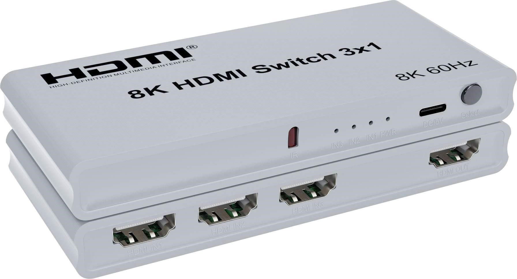 PremiumCord 8K@60Hz, 4K@144Hz HDMI switch 3:1 s dálkovým ovladačem