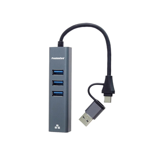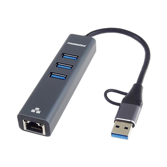 PremiumCord Adapter USB-C a USB-A na Gigabit 10/100/1000Mbps + 3x USB3.2 konektor