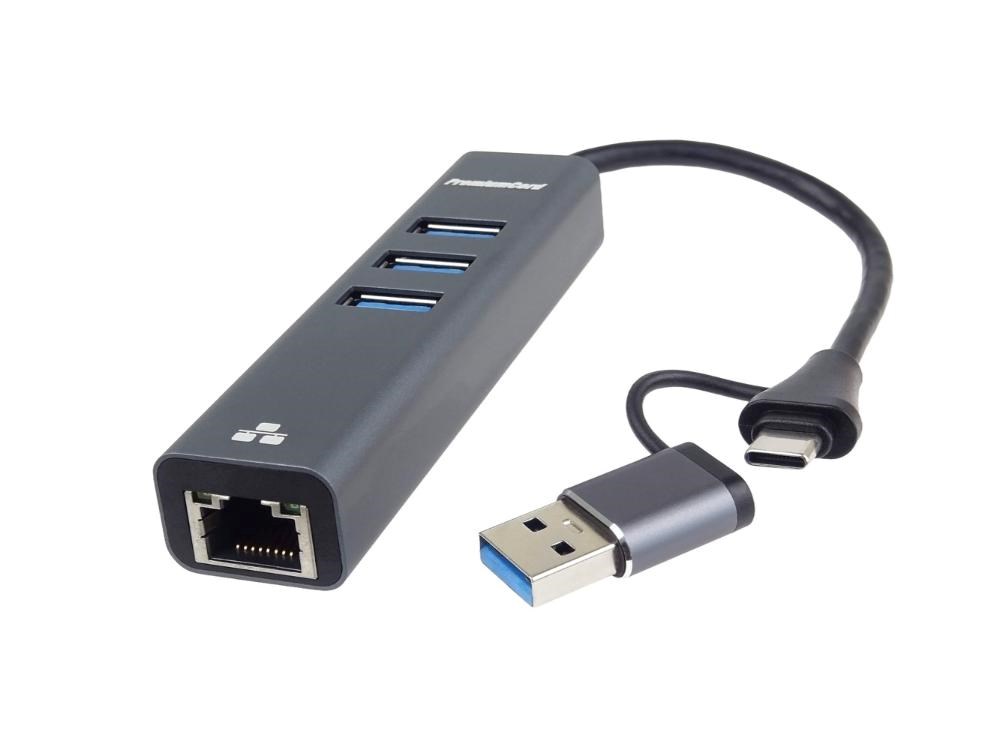 PremiumCord Adaptér USB-C a USB-A na Gigabit 10/100/1000Mbps + 3x USB 3.2 konektor