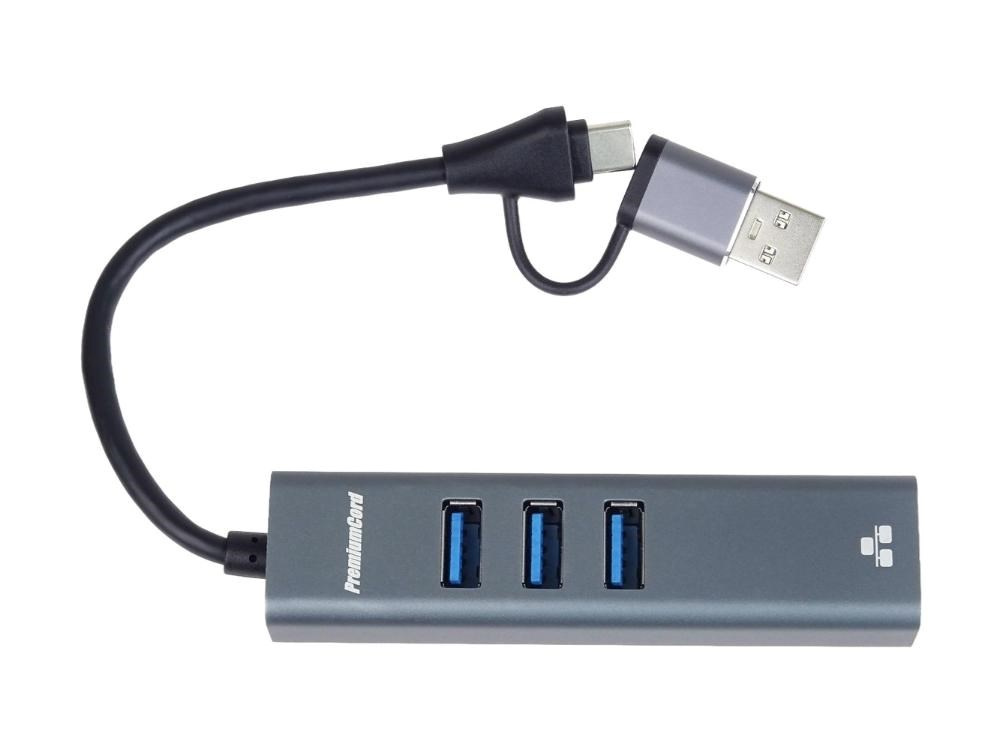 PremiumCord Adapter USB-C a USB-A na Gigabit 10/100/1000Mbps + 3x USB3.2 konektor