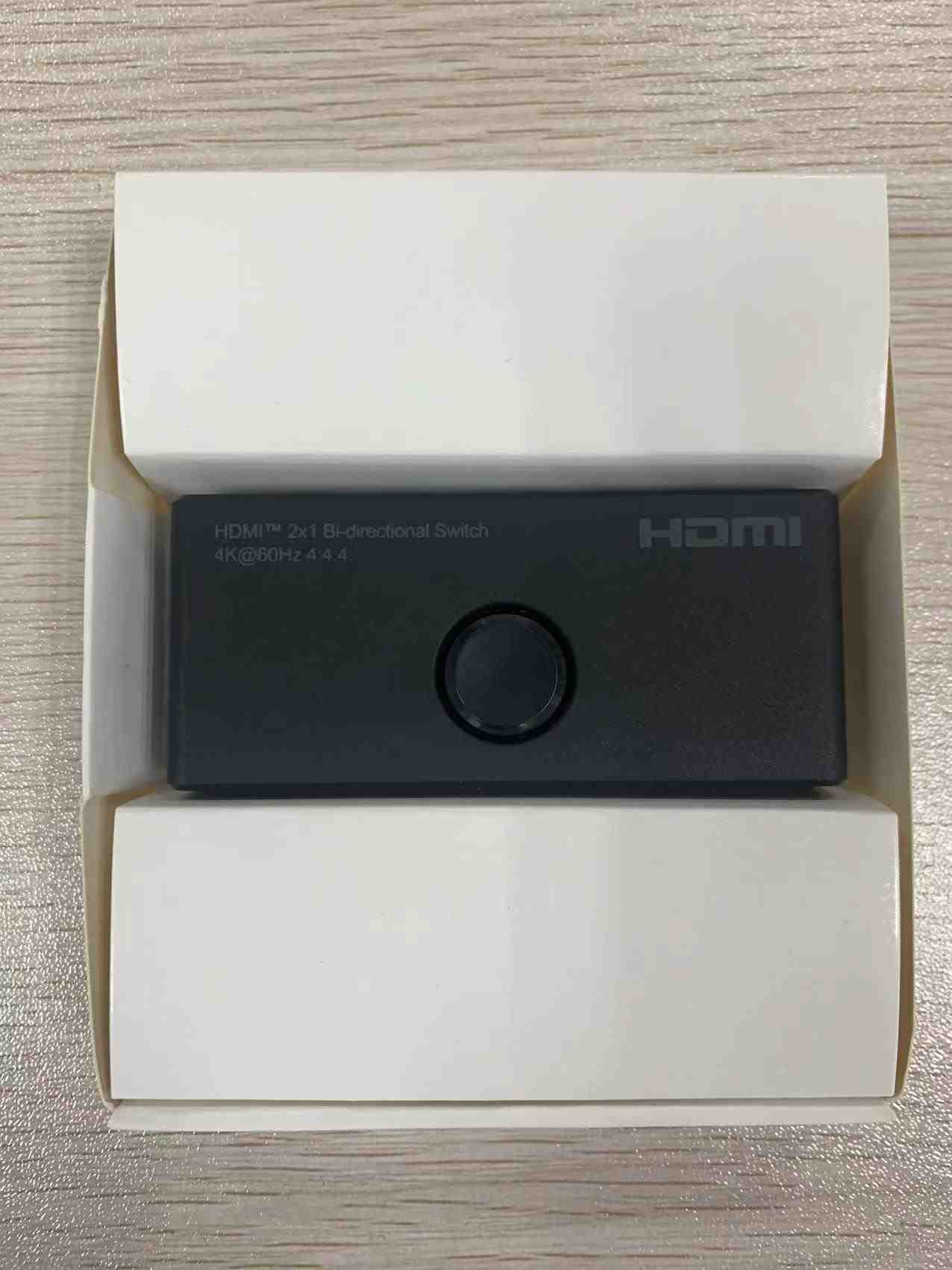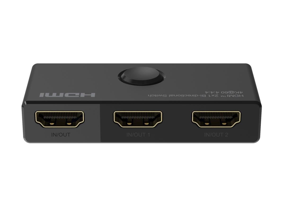 - Obousměrný 2x1 / 1x2 Přepínač HDMI lze použít dvěma různými způsoby: připojit 2 vstupní zdroje s 1 výstupním displejem nebo 1 vstupní zdroj se 2 displeji (funguje pouze na 1 obrazovce, nikoli současně).
