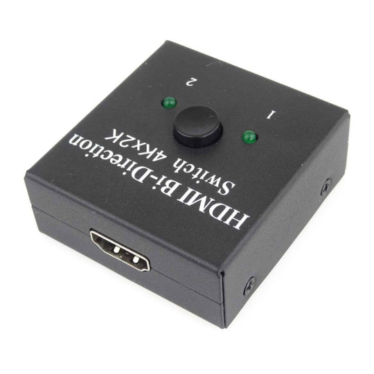 - Obousměrný 2x1 / 1x2 Přepínač HDMI lze použít dvěma různými způsoby: připojit 2 vstupní zdroje s 1 výstupním displejem nebo 1 vstupní zdroj se 2 displeji (funguje pouze na 1 obrazovce, nikoli současně).