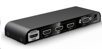 3 HDMI zařízení sdílí 1 HDMI výstupní zařízení (obrazovku). Výběr zařízení tlačítkem nebo dálkovým ovládáním.