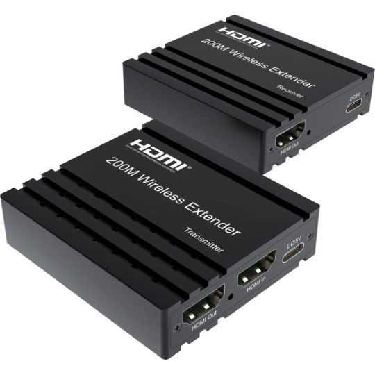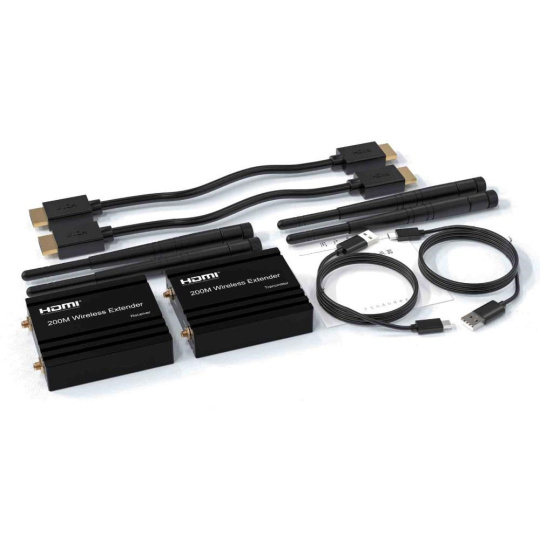 - Bezdrátový vysílač a přijímač signálu HDMI umožňuje připojit HDMI monitor nebo promítačku na vzdálenost až 200m na otevřeném prostranství.