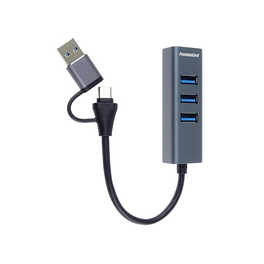 PremiumCord Hub 5G SuperSpeed, USB-C a USB-A na 4x USB-A 3.2 Gen 1
