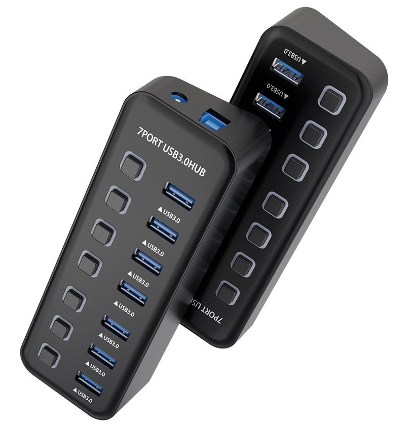 Hub umožní připojit do jednoho portu USB až 7 další zařízení USB. Zařízení je USB3.2 s rychlostí až 5Gbps. Pomocí vypínačů je možné jednotlivé USB periferie připojovat a odpojovat.