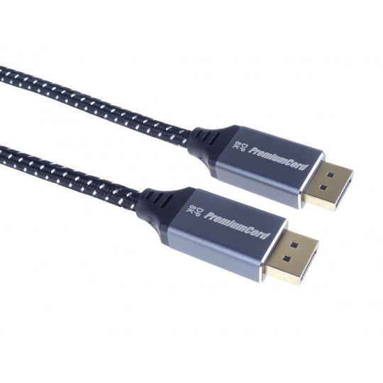 PremiumCord DisplayPort 1.4 přípojný kabel M/M pro rozlišení 8K, kovové krytky a zlacené konektory, 0,5m