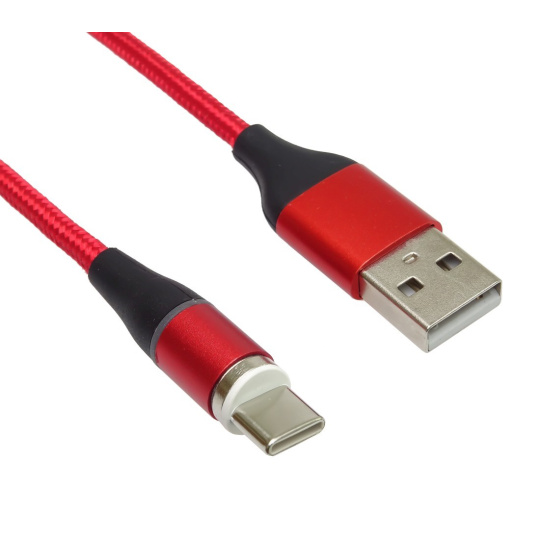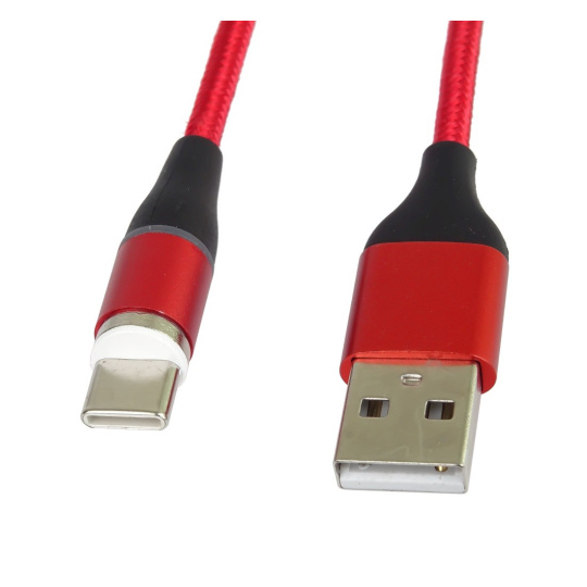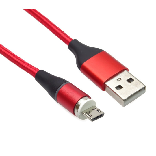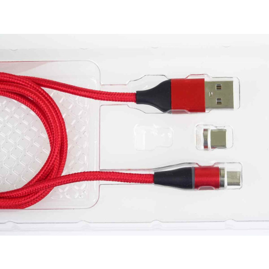 PREMIUMCORD Magnetický micro USB a USB-C nabíjecí a datový kabel 1m, červený