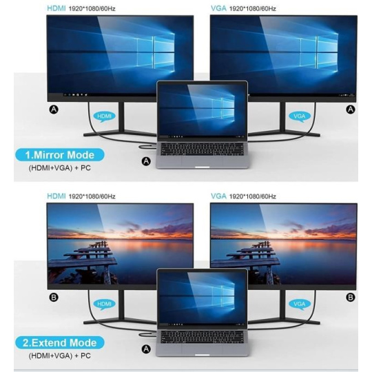 Umožní přidat další monitor a USB periferii nebo paměť a současně napájet přes konektor PD. Umožňuje také pracovat na více obrazovkách současně.