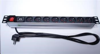 PremiumCord Panel napájecí 1U do 19" racku, 8x230V, 2m kabel, vypínač, přepěťová ochrana