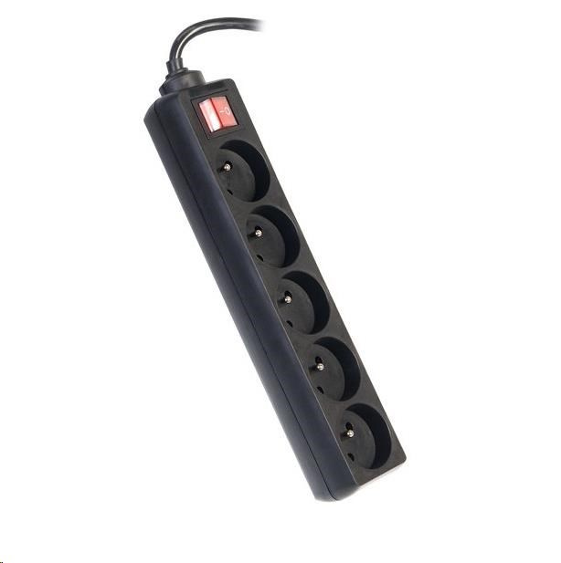 PREMIUMCORD Prodlužovací přívod 230V 5m 5 zásuvek + vypínač, černý