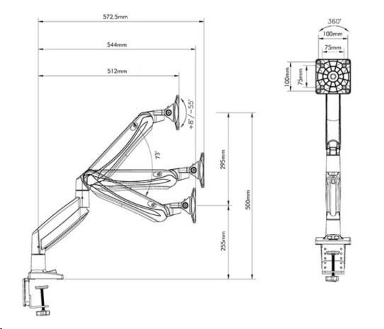 Profesionální kancelářský držák LCD monitoru Fiber Mounts F85A Kancelářský držák na PC monitory 19÷32", nastavení výšky, otáčení, náklon, rotace, korekce roviny, 2 typy uchycení na stolovou desku, USB konektory, systém vedení kabeláže Profesionální stolní držák pro uchycení a polohování PC Lcd monitorů s úhlopříčkou 19 až 32 palců. Držák Vám umožní 3D polohování obrazovky monitoru: otáčení do stran, náklon, nastavení vzdálenosti od stolního uchycení, výškovou polohovatelnost, rotaci monitoru. Držák je osazen USB konektory a má systém pro vedení kabeláže. V balení naleznete 2 typy uchycení na stolovou desku o průměru až 90mm: na kraj stolu nebo do prostoru stolu. Držák podporuje VESA standardy 75x75 a 100x100, v případě potřeby je možné dokoupit rozšíření na 200x100 nebo i 200x200. Zavěsit můžete veškeré monitory a televizory s hmotností 2 až 8kg. Výškovou polohovatelnost zajišťuje plynový píst s nastavitelnou tuhostí - snadná regulace. Profesionální kvalita a krásný design držáku Fiber Mounts F85A umožní použití ve firmách, kancelářích, pracovnách, ale i domácnostech a dětských pokojích. Technické údaje: zatížení 2÷8kg podporuje VESA standardy 75x75 a 100x100 možnost rozšíření VESA na 200x100 nebo 200x200 doporučujeme na monitory a televizory s úhlopříčkou 19 až 32" otáčení do stran +/-90° náklon: nahoru +55°, dolů -8° celková výška 500mm výšková polohovatelnost v rozmezí 295mm maximální vzdálenost od stolního uchycení 572mm funkce PIVOT - rotace monitoru, nastavení horozontální nebo vertikální polohy monitoru korekce roviny monitoru integrované USB konektory součástí balení 2 typy uchycení na stolovou desku: na kraj stolu nebo do prostoru profesionální kvalita snadná nastavitelnost krásný design záruka 2 roky Kancelářský držák na LCD monitory Fiber Mounts F85A podporuje VESA standardy: VESA 75x75 VESA 100x100 možnost dokoupit rozšíření VESA 200x100 možnost dokoupit rozšíření VESA 200x200.
