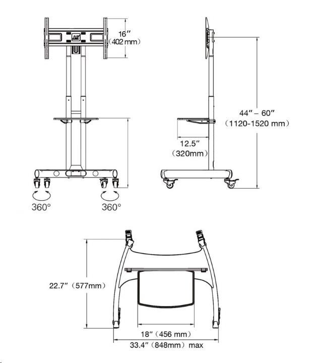 Profesionální stojan na Tv monitory displeje NB AVA1500 Mobilní stojan na všechny typy a značky televizorů 32-65", VESA 100x100 až 600x400, nastavení výšky 112-152cm, polička na příslušenství 456x320mm, vedení kabeláže, kolečka s aretací, stabilní a spolehlivý, nosnost 45,3kg Televizní stojan určený nejen pro komerční účely, nejvyšší kvalita a krásný design. Stojan je určen pro zavěšení televizorů s úhlopříčkami 32-65" všech typů i značek. Dodáván je včetně poličky na příslušenství, kterou lze stejně jako stojan výškově polohovat. Levný profesionální stojan na televize a monitory s úhlopříčkou 32-65 palců, výškové nastavení, pojezd s brzdou, možnost uzamčení Tv, vedení kabeláže, police na příslušenství, stabilní a bezpečná konstrukce. TOP kvalita, provedení černé nebo bílé - stojany Fiber Mounts AVA1500 Televizní stojany NB AVA1500 jsou nejčastěji využívány na výstavách, prezentacích, reklamních akcích, v čekárnách, lékárnách, ordinacích, na přednáškách a konferencích. Jeho konstrukce je provedena tak, aby stojan poskytoval velmi snadnou a rychlou mobilitu a výškovou flexibilitu, která se Vám velmi osvědčí právě při různých prezentacích A/V technikou. Televizní stojany na konference, přednášky, prezentace - snadné zavěšení LCD, LED, plazma, 3D, dotykových, OLED i prohnutých obrazovek s úhlopříčkou 32-65 palců, výškové nastavení, vedení kabeláže, barva černá nebo bílá - Fiber Mounts AVA1500 Technické údaje: maximální zatížení 45,3kg vhodný na televizory a monitory s úhlopříčkou 32" až 65" podporuje VESA standardy 100x100 až 600x400 nastavení výšky stojanu 1120 až 1520mm systém pro skryté vedení kabeláže police na příslušenství 456x320mm, nosnost 5kg, výškově nastavitelná kvalitní pojezdová kolečka s aretací vynikající stabilita profesionální pevná a bezpečná konstrukce velmi pěkný design barevné provedení černé záruka 5 let Televizní stojan AVA1500 - Top kvalita za skvělou cenu Stojany na Tv NB AVA1500 podporují VESA standardy: VESA 100x100 VESA 200x100 a 100x200 VESA 200x200 VESA 300x100 a 100x300 VESA 300x200 a 200x300 VESA 300x300 VESA 400x200 a 200x400 VESA 400x300 a 300x400 VESA 400x400 VESA 600x400 Profesionální konstrukce, špičkové provedení, snadná nastavitelnost a polička na příslušenství, to vše za velmi příznivou cenu. Díky těmto vlastnostem se stal televizní stojan NB AVA1500 velmi žádaným a vyhledávaným. Televizní stojan na reklamu a prezentaci Fiber Mounts AVA1500 můžete zakoupit v černém nebo bílém provedení. Výškové nastavení, VESA standard, police na příslušenství, stabilita, bezpečnost, mobilita. Záruka 5 let. Velmi levný profesionální stojan na Tv a monitory. Se stojany AVA1500 se velmi často setkáte na: výstavách prezentacích konferencích sálech koncertech přednáškách na školách v informačních centrech v ordinacích, nemocnicích čekárnách.