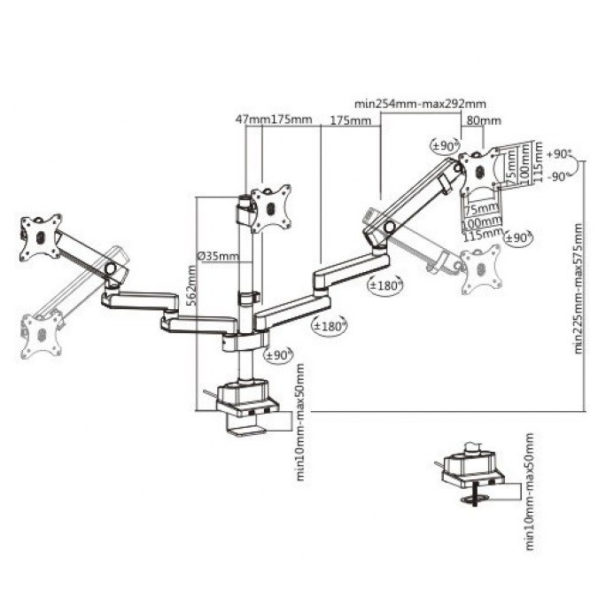 Profesionální stolní držák na 3 monitory Fiber Mounts M8C11 Plně nastavitelný kancelářský držák pro zavěšení tří monitorů 15-29", profesionální provedení, VESA 75x75 a 100x100, nosnost 21kg Profesionální systém pro uchycení a plnohodnotné polohování tří monitorů - otáčení do stran, náklon, délkové nastavení, rotace obrazovek. Držák podporuje VESA standardy 75x75 a 100x100. Maximální hmotnost monitoru 7kg (celková 21kg). Držák splní nároky každého uživatele. Profesionální stolní držák do kanceláře na 3 monitory Fiber Mounts M8C11 Technické údaje: celková nosnost 21kg (3 x 7kg) podpora VESA standardu 75x75 a 100x100 doporučená úhlopříčka monitorů 15" až 29" výškové polohování každého ramene 225mm až 575mm rotace obrazovek - možnost nezávislého otočení každého monitoru na šířku nebo na výšku nastavení vzdálenosti krajních monitorů možnost nastavení monitorů do příčky nebo do paraboly uchycení na stolové desky o průměru 10mm až 50mm stolový úchyt má integrované přípojky USB 3.0 systém vedení kabeláže materiál hliník a ocel barevné provedení černé záruka 5 let Stolní držák na 3 monitory Fiber Mounts M8C11 Držák na 3 monitory M8C11 podporuje VESA standardy: VESA 75x75 VESA 100x100 Profesionální držák na tři monitory s plnohodnotným polohováním. Držák je vhodný do kanceláří, pracoven, firem ale i domácnosti..