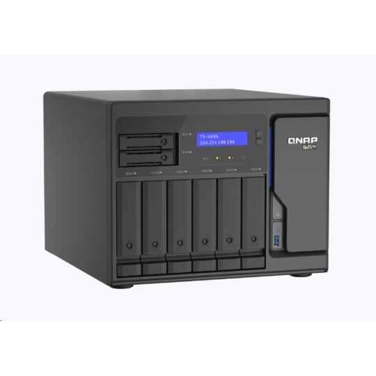 | Pozice pro diskové jednotky | 6 x 3,5" SATA 6 Gb/s, 3 Gb/s + 2 x 2,5" SATA 6 Gb/s, 3 Gb/s Systém se dodává bez HDD. Seznam kompatibilních disků HDD najdete na stránce https://www.qnap.com/compatibility/ |