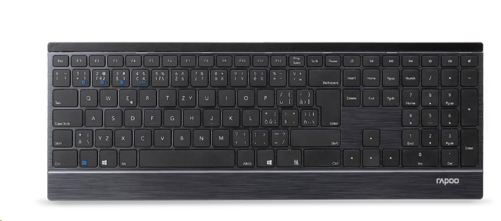 Tato ultratenká sada myši a klávesnice nabízí špičkové materiály se stylovým designem a komfortem užívání. Tělo klávesnice vyrobené z nerezové oceli a hliníkové slitiny je nejen pevné a odolné, ale zároveň dodává pracovnímu stolu určitý styl. Sada 9500M je nejen vyspělá konstrukcí, ale také funkcionalitou. Nabízí vícerežimovou technologii připojení firmy Rapoo – prostřednictvím spolehlivého bezdrátového vysílače 2,4 GHz, Bluetooth 3.0 a 4.1 – umožňuje současné připojení a přepnutí několika zařízení (s automatickým párováním). Myš v této sadě je vybavena plně nastavitelným vysoce výkonným optickým senzorem 600 až 1600 DPI. Navíc energeticky úsporná technologie firmy Rapoo zajišťuje životnost baterií až 12 měsíců, takže minimalizuje potřebu jejich výměny.