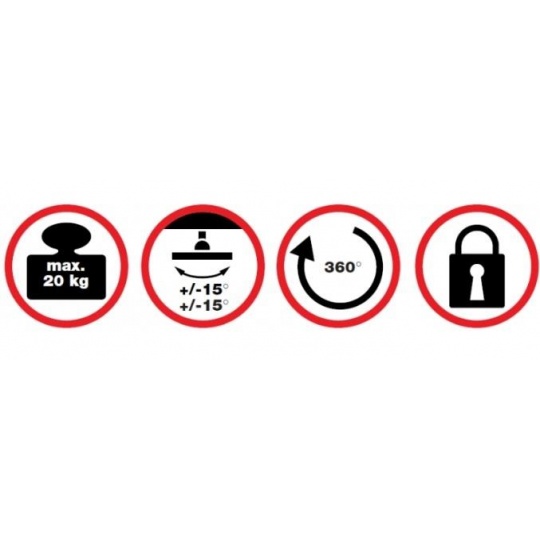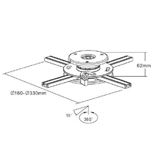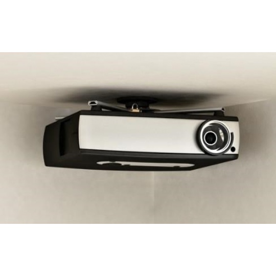 Stropní držák na dataprojektory - vzdálenost od stropu 6,2cm, přístroj lze otočit o 360° a naklonit +/-15°, maximální zatížení 20kg, možnost uzamčení proti odcizení, černý / stříbrný. Univerzální systém uchycení dataprojektorů (rozsah 16-33 cm)..