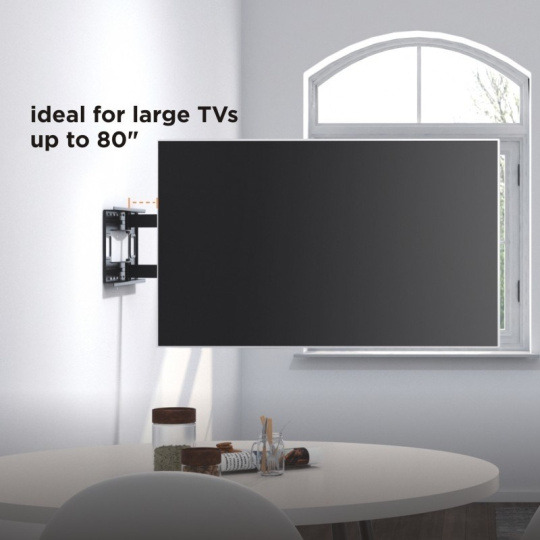 Nástěnný ocelový XL držák s bočním natáčením na LCD TV s uhlopříčkou 43"- 80" (109-203cm) a hmotností maximálně 50kg. 3x pant, vertikálně výklopný +5°/-15° a horizontálně otočný +90°/-90°, vzdálenost od stěny 82-1015mm, vodováha, Cable Managment, materiál ocel, barva černá. Uchycení VESA: 200x200, 300x200, 400x200, 300x300, 400x300, 400x400, 600x400, 800x400..