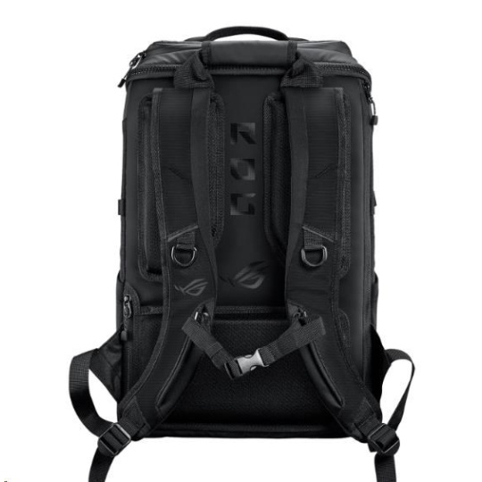 Herní batoh ROG Ranger BP2701 s objemem 22 litrů má velkou polstrovanou kapsu, do které se vejde až 17palcový notebook, a několik menších kapes na klávesnici plné velikosti, myš a podložku pod myš, headset, nabíječku a další vybavení.