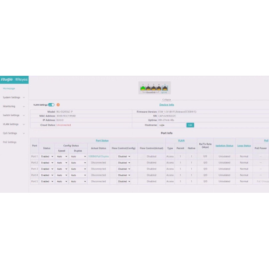 Registrace dealerské ceny: https://docs.google.com/forms/d/1sWwsswsbBk36eZx4CJrfl47qUvrORQyYz7kMjrt2f_c/prefill Popis produktu Inteligentní cloudově i přes webové rozhraní spravovatelný smart desktop switch RG-ES205GC od značky Ruijie, nabízí cenově efektivní řešení s 5 Gigabit LAN porty. Tento kompaktní přepínač je ideální pro síťové aplikace, které vyžadují výkon a spolehlivost. Co se výčtu funkcí týče, switch nabízí tichý chod bez ventilátorů, podporu až 16 VLAN, DHCP snooping, testování kabelu a ochranou proti zakruhování. Klíčové vlastnosti • 5× 10/100/1000 Mbps LAN porty • Kvalitní provedení, kovové šasi • Bez venilátoru • Nízká spotřeba - max. 3 W • Správa přes webové rozhraní a cloud • Celoživotní správa na Ruijie Cloud kdykoli a kdekoli • Rozpoznávání IP kamer - jedinečná hodnota pro CCTV síť • Automatická prevence proti zakruhování Obsah balení • Zařízení • Napájecí adaptér 5 V/1 A Technické parametry Konektory a rozhraní Rychlost LAN:(5) 10/100/1000Mbps Napájení Typ napájení:DC konektor Max. spotřeba energie [W]:3 Napájení přes konektor/svorkovnici:5V / 1A Fyzické charakteristiky Provedení:Desktop Ventilátory:Bez ventilátoru Šasi:Kovové Tlačítka:Reset Provozní teplota [°C]:0 až 40 Šířka [mm]:119 Výška [mm]:24 Hloubka [mm]:75 Obecné Rychlost přepínání [Gbps]:10 Tabulka MAC adres:2000 Rychlost předávání paketů [Mpps]:7,4 Software Web management:Ano Management:Webové rozhraní, Ruijie cloud Funkce:VLAN, DHCP snooping Výchozí IP adresa:10.44.77.200 Výchozí jméno a heslo:Nastavuje se při prvním spuštění.