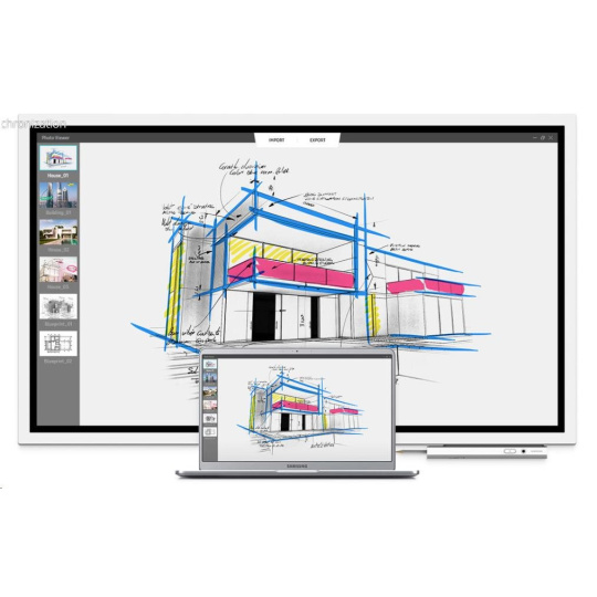 Samsung Flip podporuje rozmanitá řešení pro jednoduché sdílení a úpravu obsahu. Dosáhněte efektivnější spolupráce propojením s dalšími přístroji. Využijte například svá mobilní zařízení a spojte se s displejem bezdrátově i pomocí kabelu.