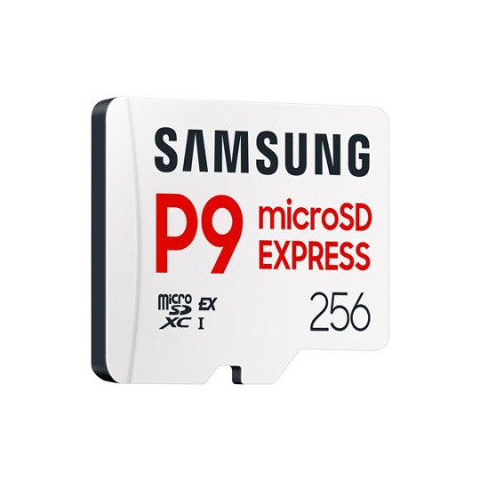 Samsung P9 Express je výkonná microSDXC paměťová karta s kapacitou 256 GB, ideální pro moderní zařízení jako mobilní telefony, tablety, akční kamery, drony, notebooky či herní konzole. Díky rozhraní PCIe Gen3.0x1 a NVMe 1.3 (SD Express) nabízí extrémně rychlý sekvenční čtení až 800 MB/s a podporu UHS-I s rychlostí čtení až 90 MB/s.