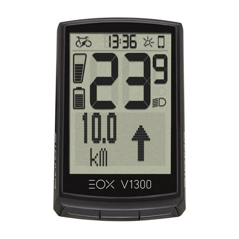 Počítač EOX® VIEW 1300 je určen pro toho, kdo hledá cyklopočítač pro své elektrokolo nebo pokud mu už nedostačují funkce jeho současného počítače. Je ideálně přizpůsobený potřebám majitelů elektrokol a zaručuje úhledný kokpit. Během vyjížďky EOX® VIEW 1300 ukazuje aktuální údaje o jízdě a celou řadu hodnot elektrokola, jako například Assist Mode, dojezd a stav nabití baterie. Zobrazení displeje lze individuálně přizpůsobit podle vlastních požadavků. Propojením EOX® VIEW 1300 s aplikací EOX® App lze zaznamenávat svou vyjížďku a dostávat navigační pokyny k odbočení přímo na displej počítače.