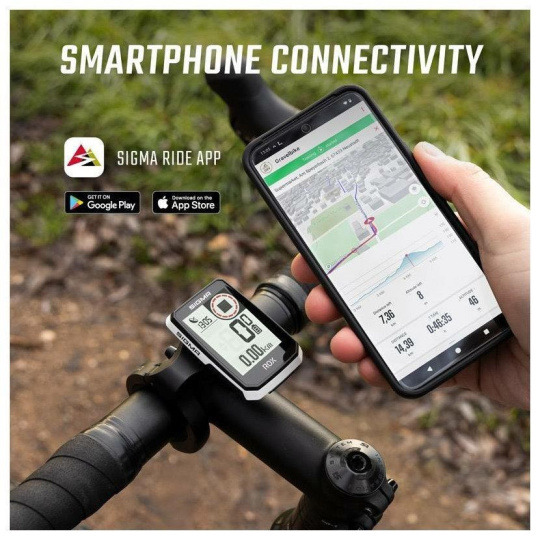 Prostřednictvím Bluetooth lze data z cyklopočítače odesílat do smartphone a v aplikaci SIGMA RIDE je ukládat a vyhodnocovat. Na smartphonu lze nastavit oblíbený vzhled displeje. Nejdůležitější data a statistiky lze pomocí funkce LIVE v aplikaci SIGMA RIDE zobrazovat a pohodlně vyhodnocovat i v reálném čase na smartphonu.