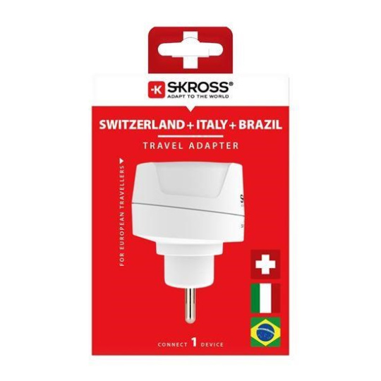 SKROSS cestovní adaptér pro použití v Brazílii, Itálii a Švýcarsku, typ J/N/L