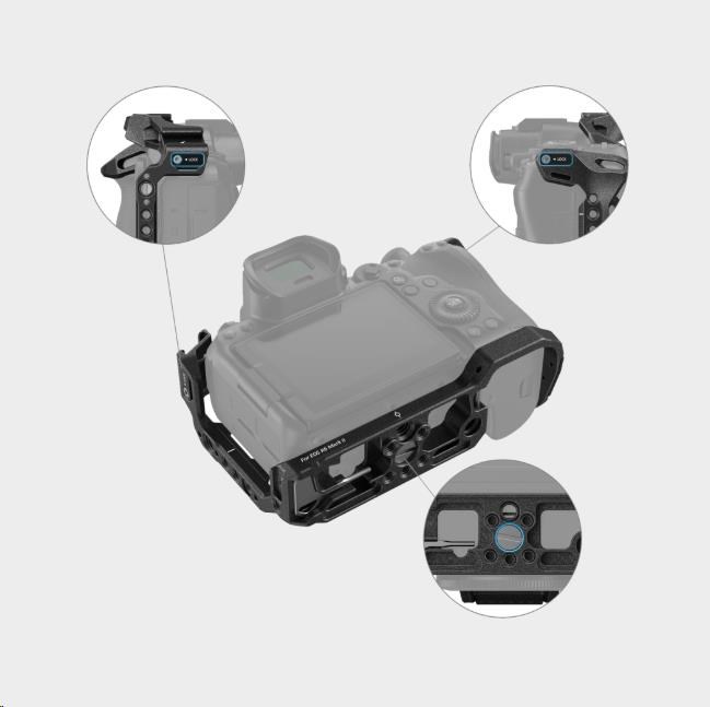 • Otvory pro ramenní &; zápěstní popruh fungují s ručním popruhem SmallRig 3848 nebo ramenním popruhem 2428.