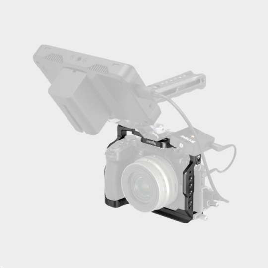 Klec je vybavena několika otvory se závitem 1/4"-20 a polohovacími otvory 1/4"-20 pro upevnění příslušenství, jako jsou boční rukojeti Smallrig, magická ramena, svorky pro kabel HDMI, podpěry monitoru a další.
