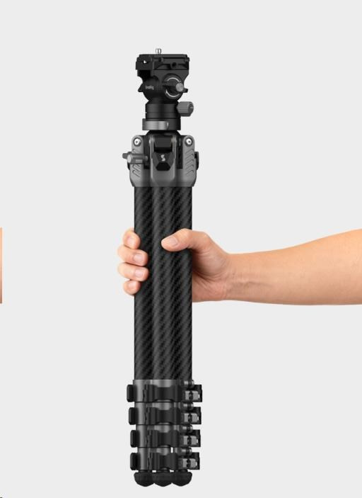 Tento stativ je vyroben z vysoce pevných uhlíkových vláken a navzdory svým kompaktním rozměrům zajišťuje vynikající stabilitu.