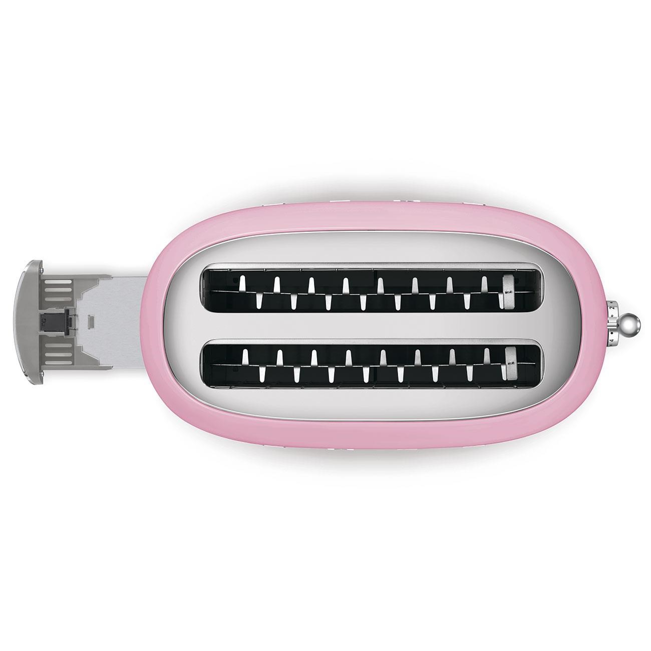 Smeg TSF02PKEU, toustovač / topinkovač, 4 toasty, 6 úrovní opékání, zásuvka na drobky, styl. 50. let, růžový