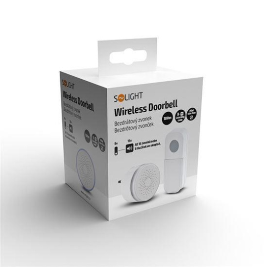 Solight bezdrátový mini zvonek, do zásuvky, 180m, bílý, learning code