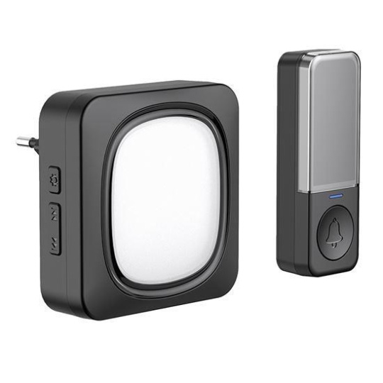 Solight bezdrátový zvonek a noční světélko, do zásuvky, 150m, černý, learning code