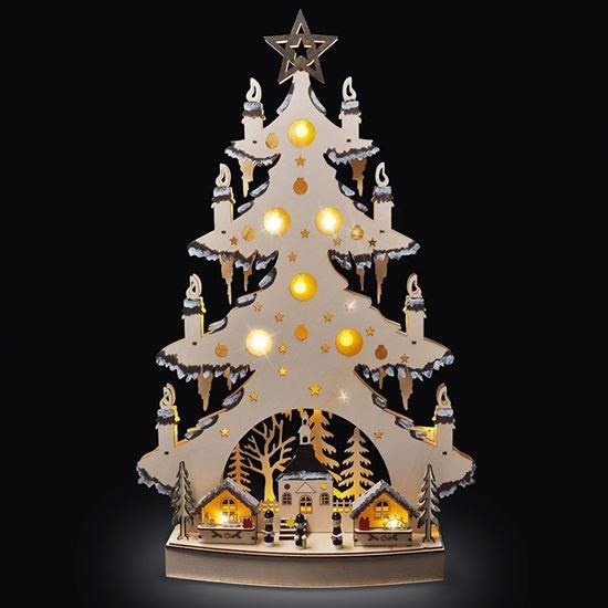Dřevěný váčnoční stromekek s dekoracemi a LED osvětlením